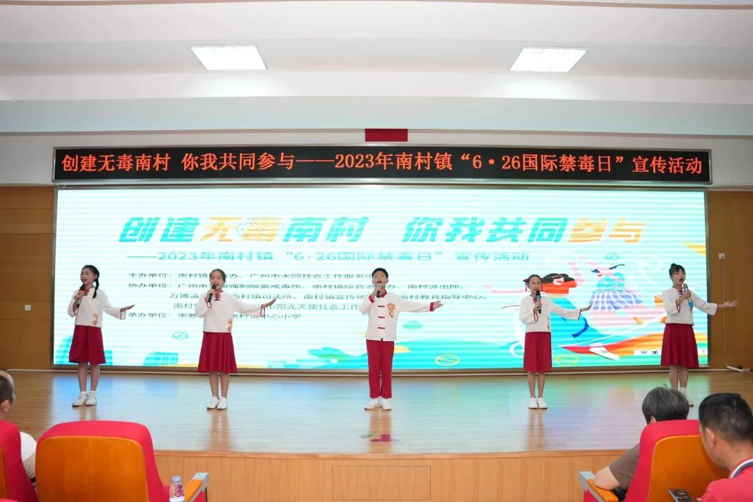 6月16日上午,“创建无毒南村 你我共同参与”2023年南村镇“6·26国际禁毒日”宣传活动在广州市番禺区南雅学校举行。活动中,由南村镇中心小学、樟边小学等7所学校带来了以“禁毒”为主题编排的武术、舞蹈、诗歌等文艺汇演,同时,举行了南村镇与广州市潭岗强制隔离戒毒所共建的社区戒毒社区康复工作指导站揭牌仪式。该活动进一步拓宽南村镇禁毒宣传教育面,提升全民禁毒意识,这将意味着南村禁毒工作迈向新的台阶。