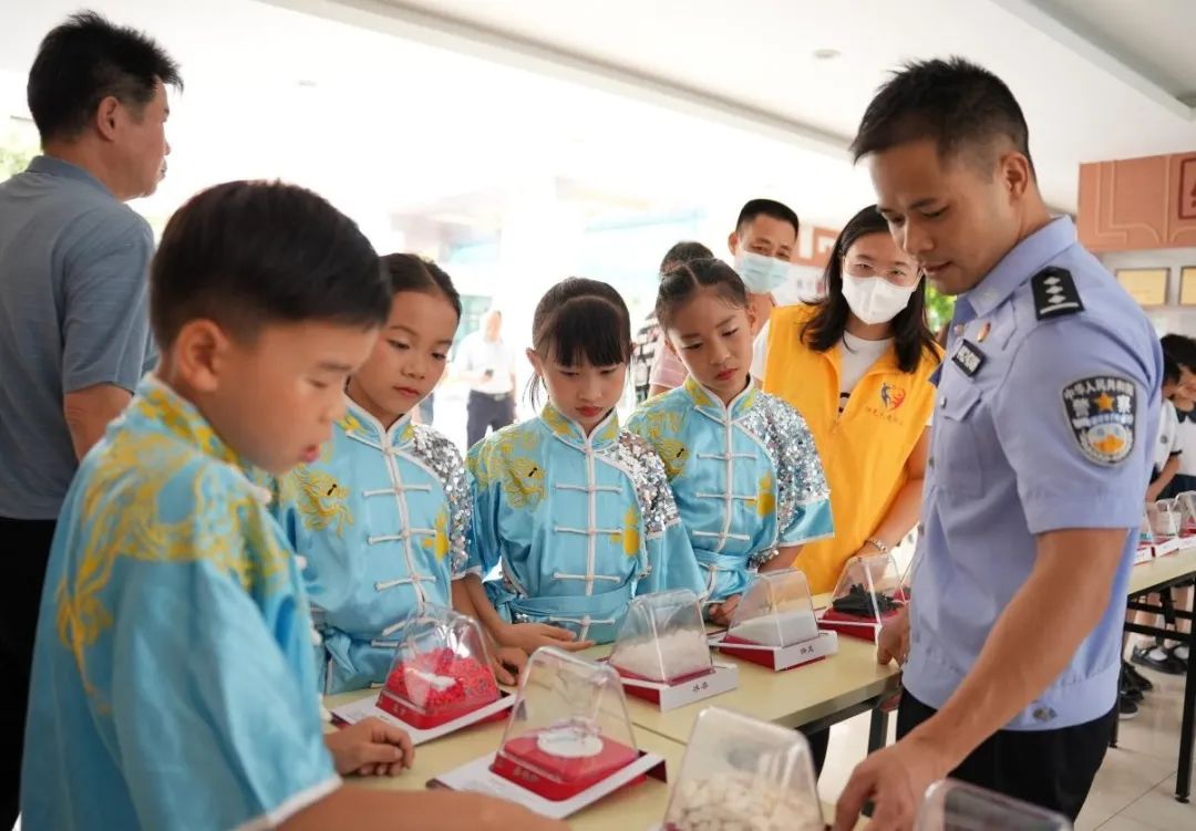 “这个怎么好像奶茶?”“这个好像糖果!”......同学们一边观看一边提出疑问,“同学们,新型毒品会被包装成零食的样子迷惑大家,所以我们一定要提高警惕。”广州市潭岗强制隔离戒毒所的民警耐心地解答同学们的提问。