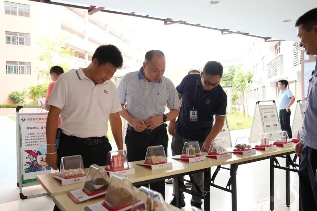 活动中,广州市潭岗强制隔离戒毒所开展了禁毒宣传工作,桌子上摆放的毒品模型,走廊两边的宣传板,都成为了学生的“打卡”点。