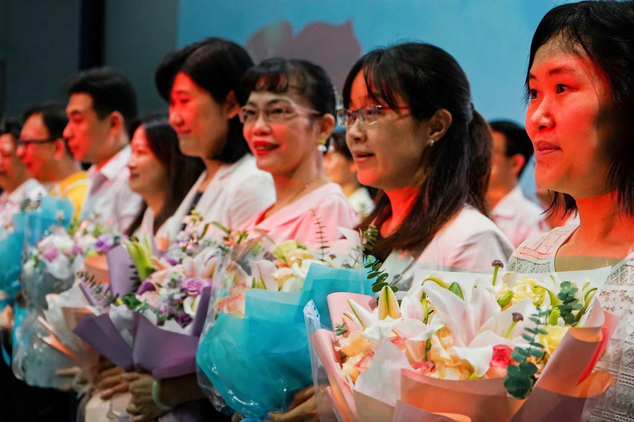 在谢师恩环节,学生代表紫晴同学动情地说:“一朵云推动一朵云,一个灵魂唤醒一个灵魂。老师用爱教会我们如何去爱,爱让我们拥有春天一般的未来……”现场不少师生眼眶湿润。广州市第十七中学的校领导、老师也为2023届“追光少年”送上祝福:“少年心事当拏云,万里长空竞风流!”