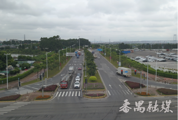 为提高交叉口的通行能力,番禺区交通运输局将该交叉口改造成渠化加信号灯控形式的十字平交。原交叉口北进口和西进口已设置两处临时渠化岛,该项目将北进口和西进口两处临时渠化改造为实体渠化岛,在南进口处增设渠化岛,同时完善了该路段的标志标线。