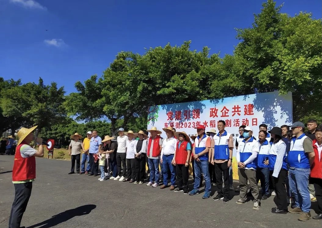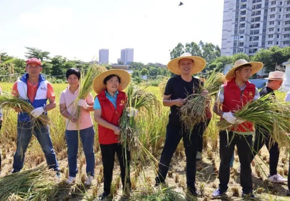 活动中,东环街党工委书记何柳青,街党工委副书记、办事处主任张青等街领导班子,共建企业广东意高能源科技股份有限公司、区农业农村局、街机关党支部、街社区服务中心党支部等单位40多名党员干部一起收割稻谷,体验丰收的喜悦。活动中,共建企业负责人介绍了政企共建都市水稻试验田种植情况。
