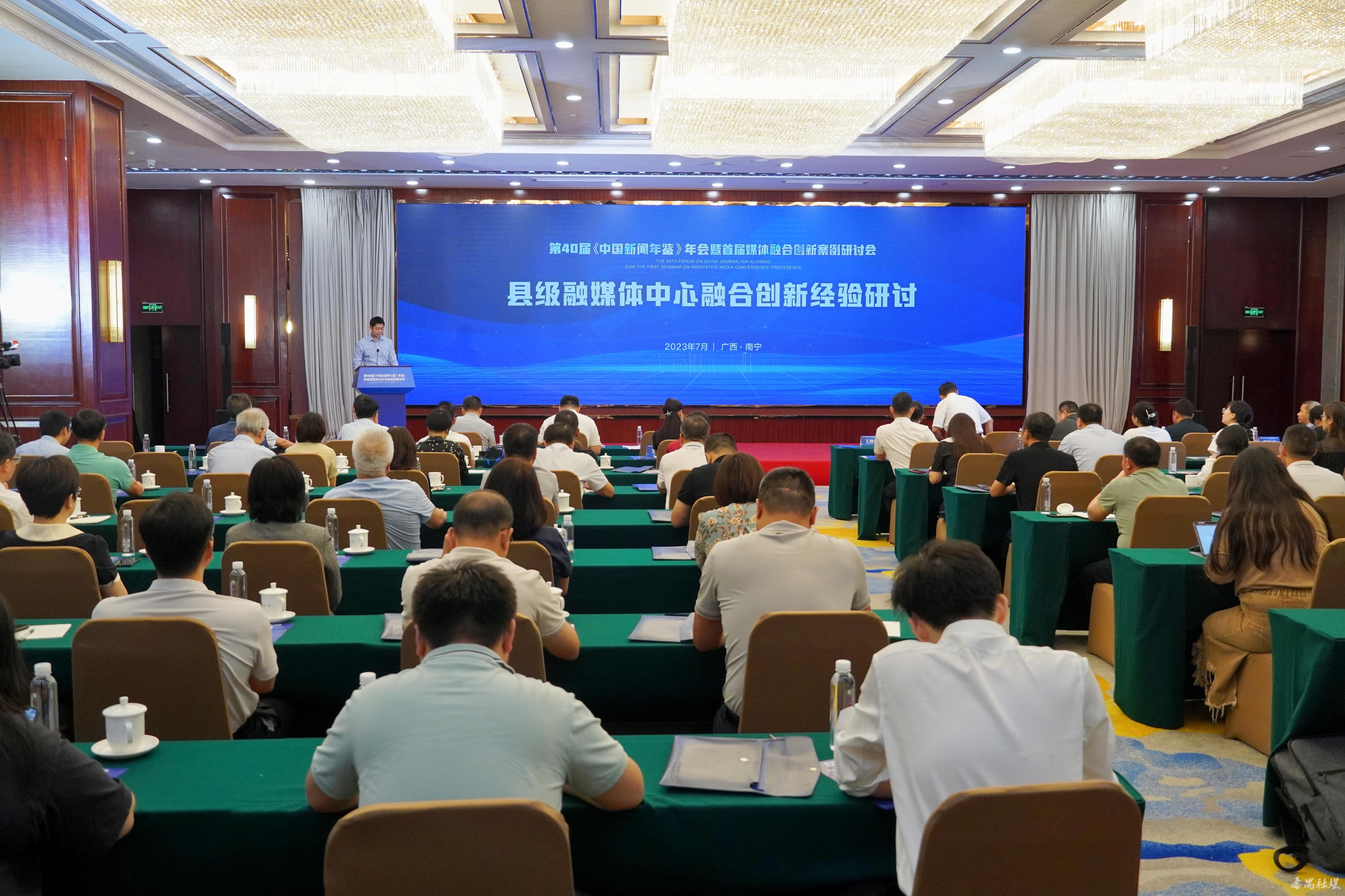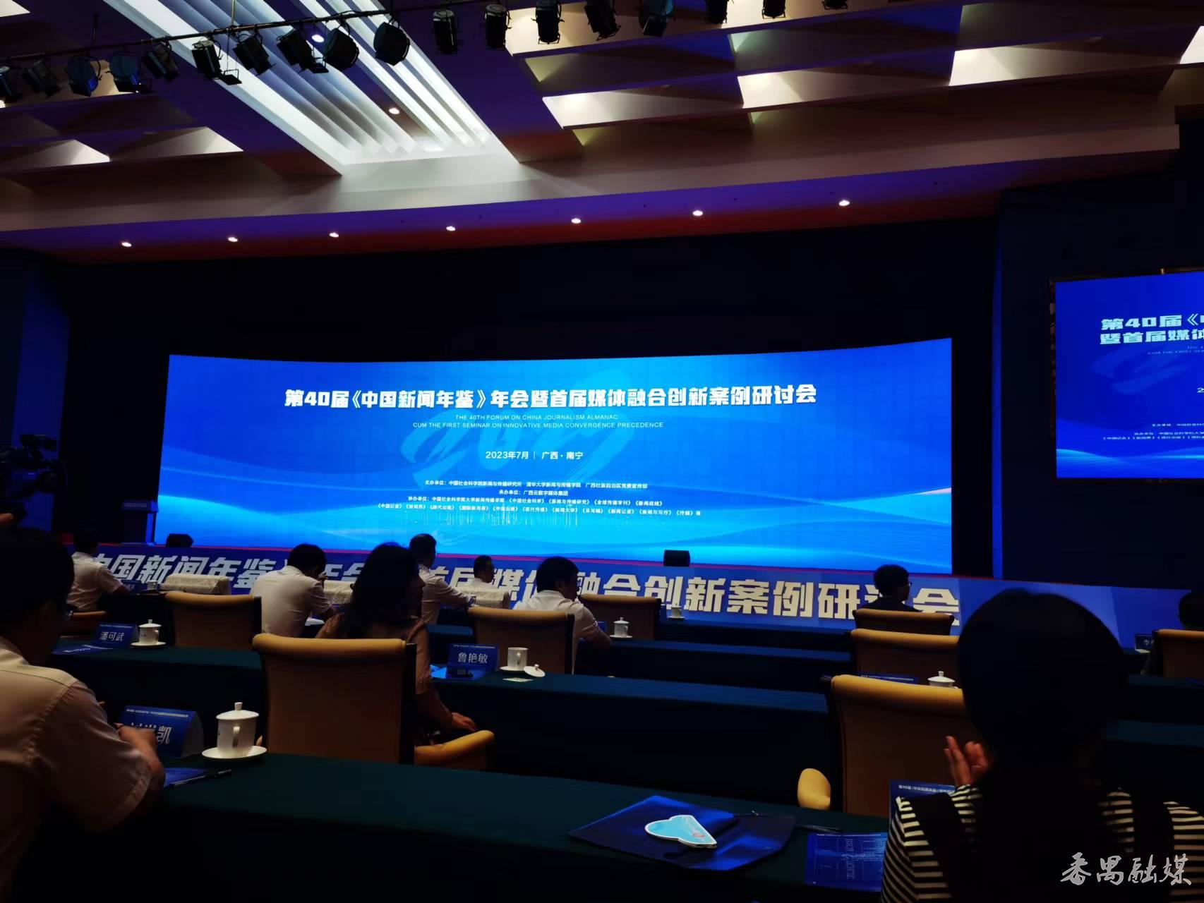 第40届《中国新闻年鉴》年会暨首届媒体融合创新案例研讨会,由中国社科院新闻与传播研究所、清华大学新闻与传播学院、广西壮族自治区党委宣传部共同主办。来自全国新闻行业的权威研究机构、高校新闻学院、主流媒体等200多名嘉宾和代表汇聚一堂,共话媒体融合发展之道。第十二届全国人大教育科学文化卫生委员会主任委员、原国家新闻出版总署署长柳斌杰,广西壮族自治区党委常委、宣传部部长陈奕君,人民日报社副总编辑崔士鑫,中国社会科学院秘书长、党组成员赵奇出席并致辞。