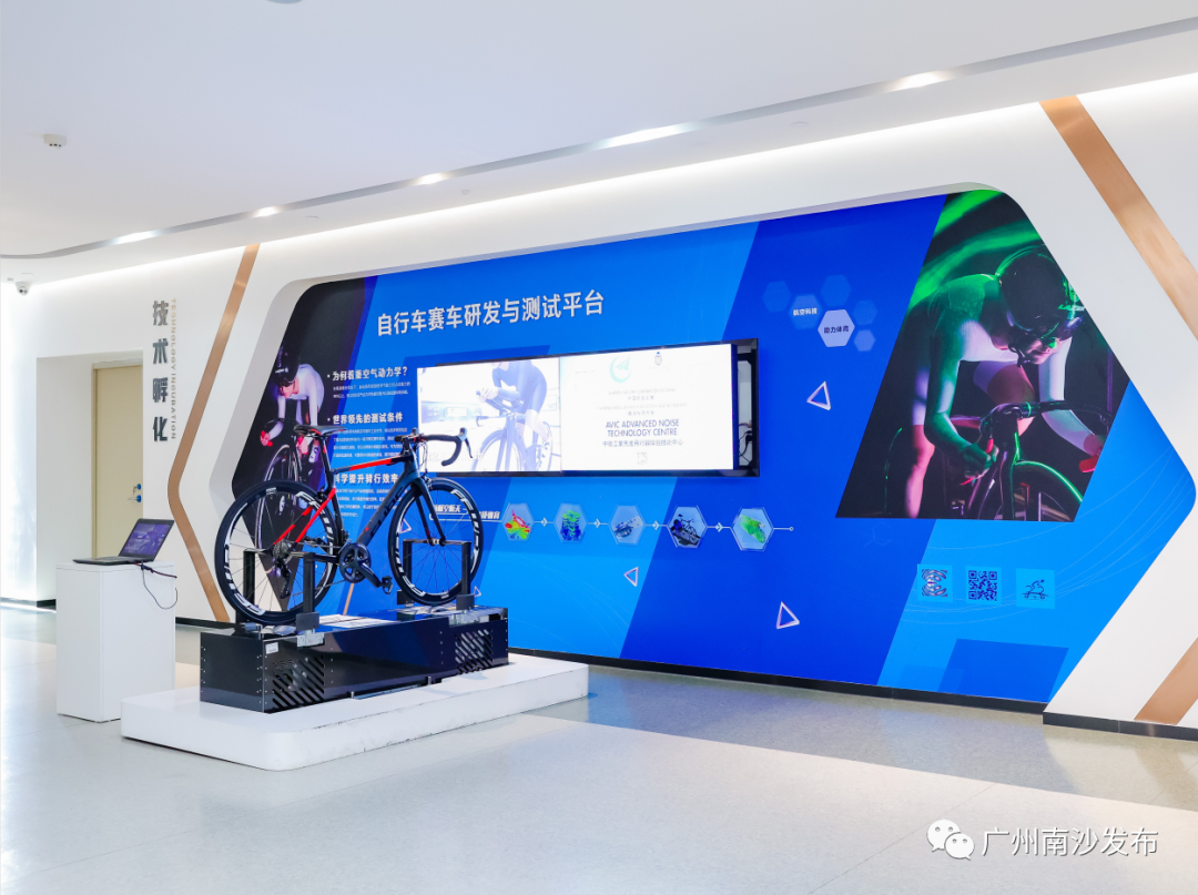“这个装置下面装有数据采集系统,通过运动员的坐姿调节和服装设计,再利用空气动力学的原理降低空气阻力,能帮助运动员提高骑行速度。”港科大霍英东研究院的负责人向小南介绍了他们研发的自行车赛车系统。