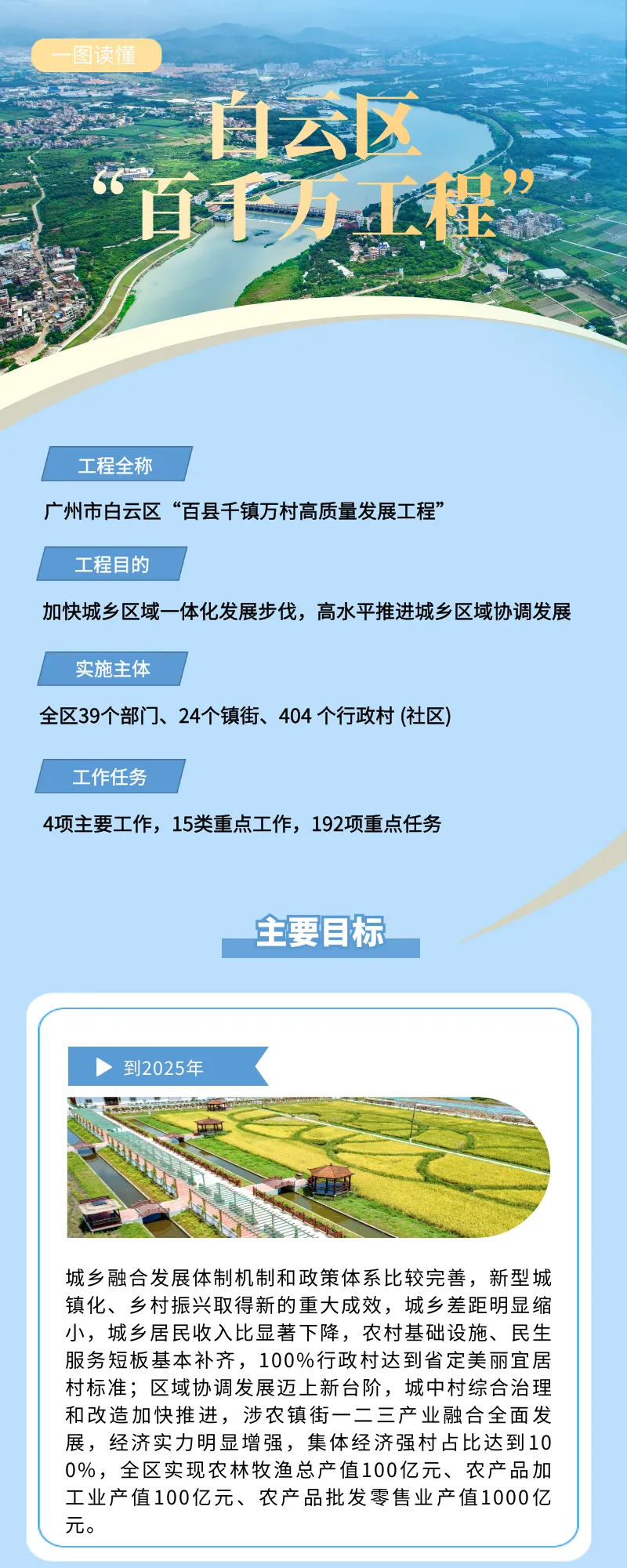 广州市白云区“百县千镇万村高质量发展工程”指挥部日前印发了《广州市白云区落实“百县千镇万村高质量发展工程”促进城乡区域协调发展实施方案》(以下简称《实施方案》)。