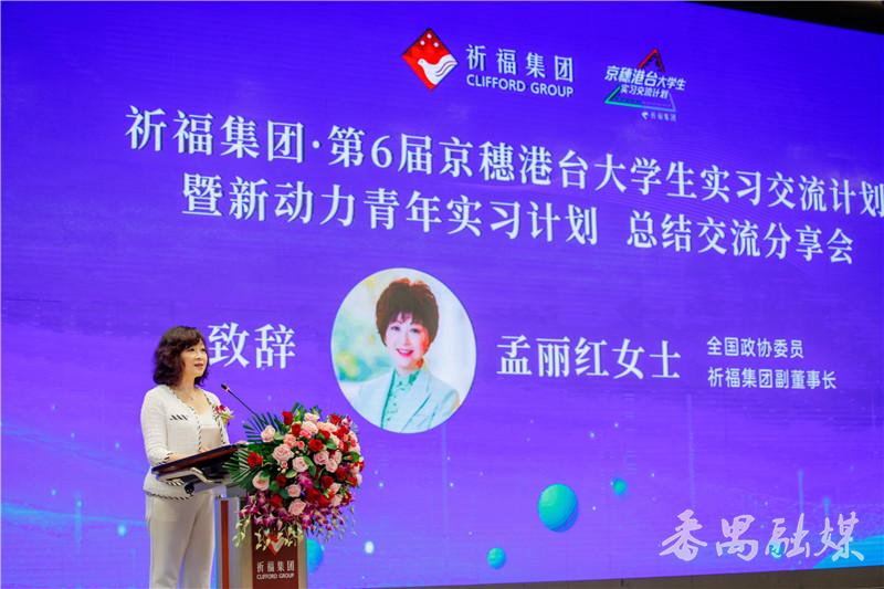 活动致辞上,“祈福集团京穗港台大学生实习交流计划”发起人孟丽红表示,京穗港台四地的年轻人在过去的一个多月里,在一线岗位上砥砺磨练,施展才华,度过了充实而快乐的实习时光。希望青年朋友们将这一个多月以来的所见、所学、所感,转告身边的朋友们,让大家充分了解大湾区建设的重大机遇、高质量发展的最新面貌,积极投身于新时代的奋斗征途。