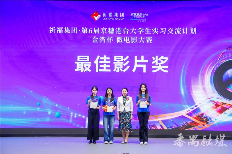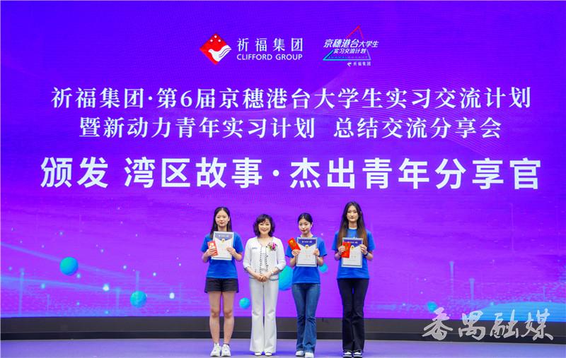 在本次实习交流期间,祈福集团策划了富有创意的“湾区故事·杰出青年分享官”评比活动和“金湾杯”微电影大赛,通过发布热门社交平台及微电影方式,展现大湾区精彩生活和新时代青年风采,分享会上为赛事获奖选手颁发了奖项,鼓励他们继续讲好湾区故事,讲好中国故事。