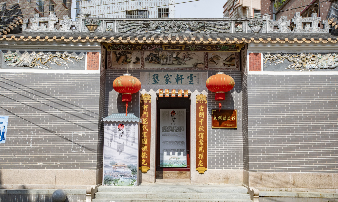 大朗村史馆位于大朗党建文化广场旁的云轩家塾内。该馆从“古朴的村风”“淳朴的民风”“良好的家风”“优良的党风”四个篇章,通过图文资料、档案照片、历史实物,依次展示大朗村的历史沿革、村容村貌、风土民情、文化特色。