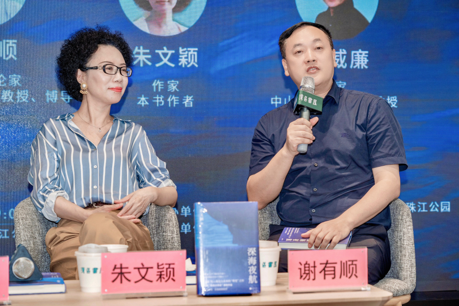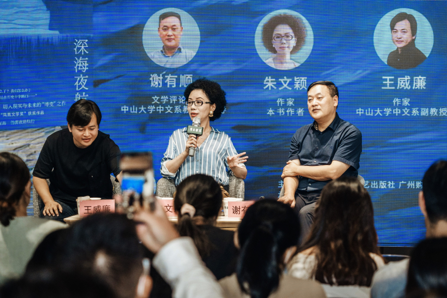 9月10日晚,在潮湿的南方雨夜,作家朱文颖携《深海夜航》做客湾区书屋举办新书分享会,与文学评论家、中山大学中文系教授谢有顺和作家、中山大学中文系副教授王威廉展开了一场交织着理性与感性的精彩对谈。