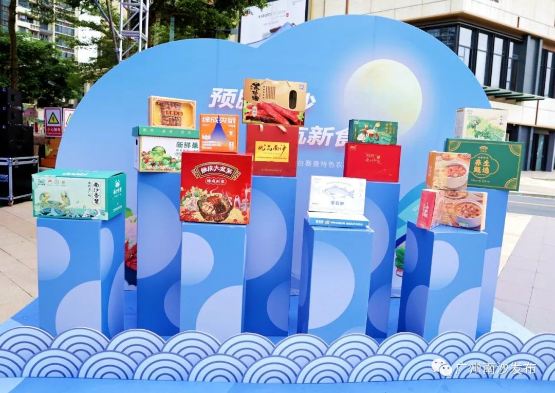 南沙出产的新垦莲藕、黄油蟹、诚一鲜鲩、预制菜品和月饼,梅州出产的花生、大米,还有来自贵州的酸汤、三碗粉、菌菇以及新疆喀什的坚果等一同展出。