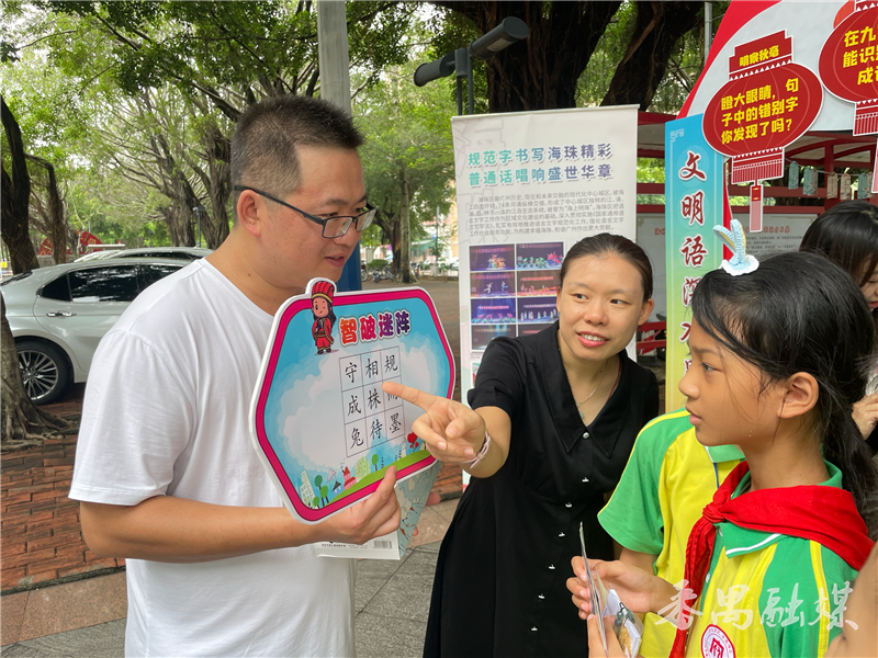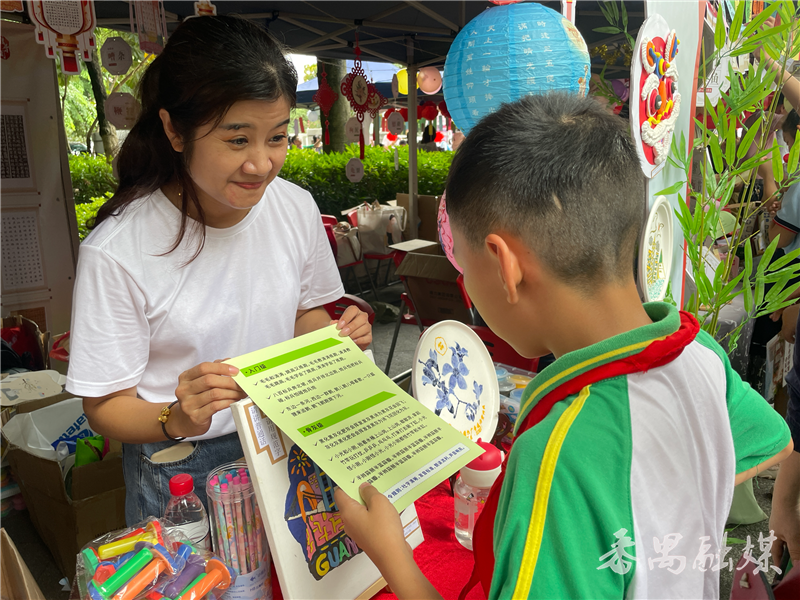 随后,活动现场还进行了文艺演出,普通话诵读、情景剧表演等轮番上演,以最美中国话,展示中华语言魅力;书法、非遗艺术品等现场展示,以最美方块字展现中华文字之美。现场还设置了各区展示摊位,猜灯谜、绕口令、识别错别字、创意造句等小游戏吸引了不少学生和街坊参与。“我在这些游戏里学到很多,尤其是一个纠正读音的摊位,我才发现有些字的读音并不是我以为的那样。例如繁文缛节的‘缛’,原来是念‘rù’,我以前以为是二声调的。”一位学生说。