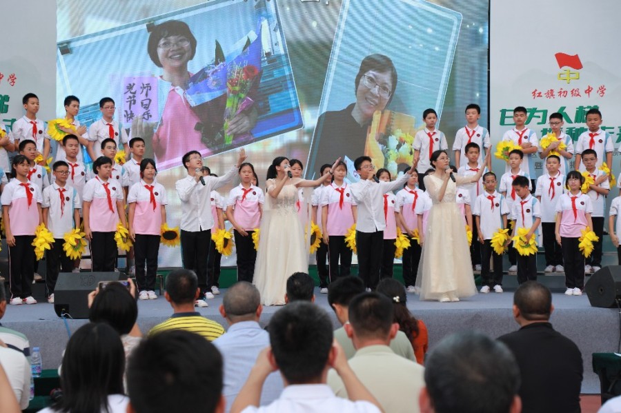 “小苗儿结出硕果,怎能忘春风春雨?亲爱的区老师,我怎能忘记您?!”9月22日下午,佛山市顺德区容桂街道红旗中学首届“区敏玲老师班”的同学们,在诗朗诵中表达他们对已逝的区敏玲老师深深的敬意。