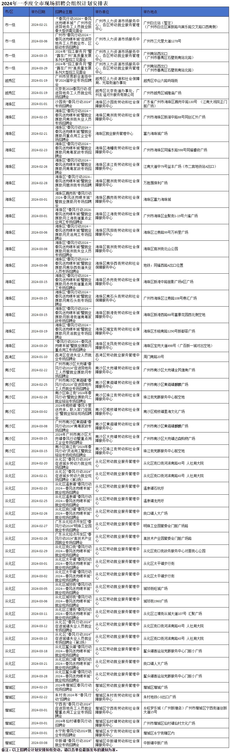 此外,按照安排,“春风行动2024”活动期间全市将举办招聘活动250场次以上,其中各区计划举办20场次以上,确保组织开展重点企业、失业人员、灵活用工/零工招聘、南粤家政等专项招聘会各3场次以上。