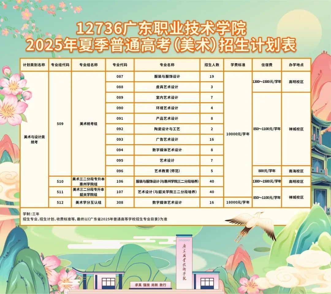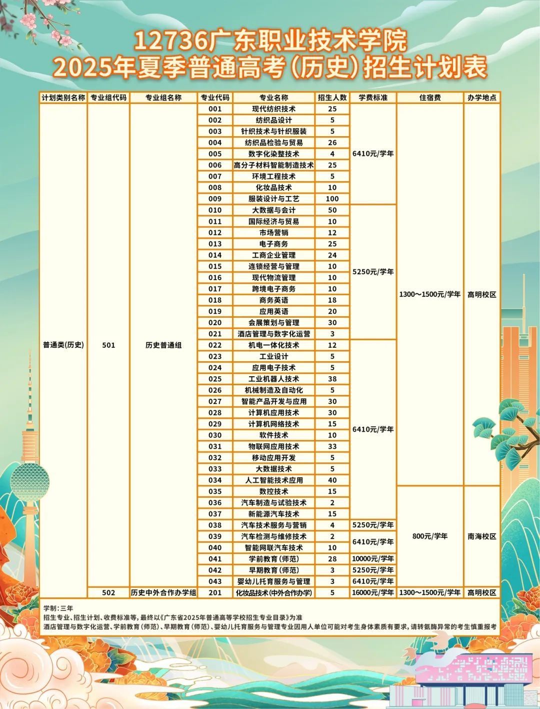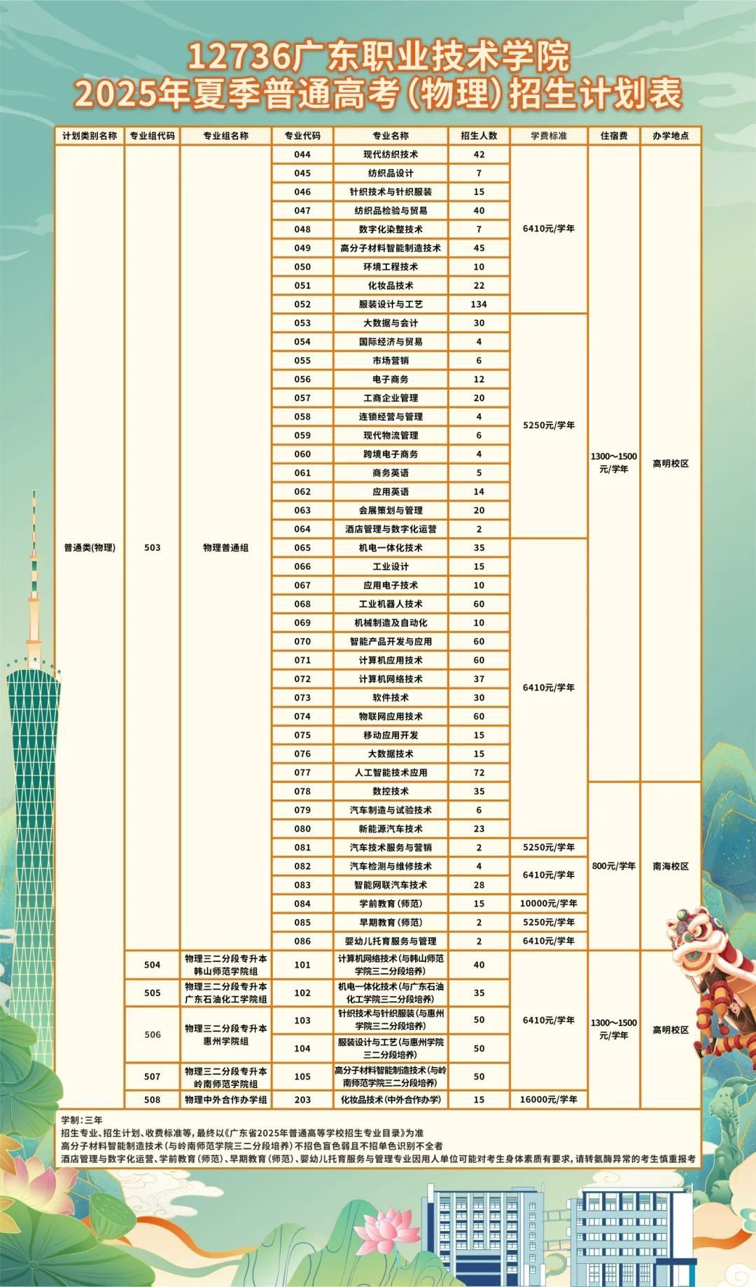 附:广东职业技术学院在广东省内的2025年夏季普通高考招生计划