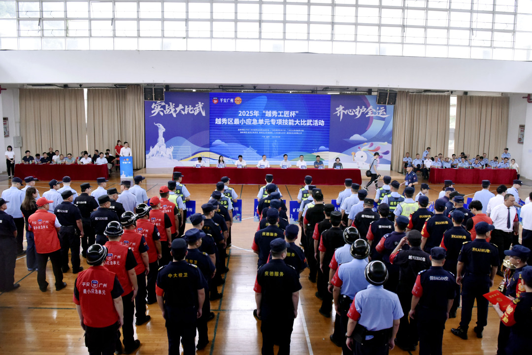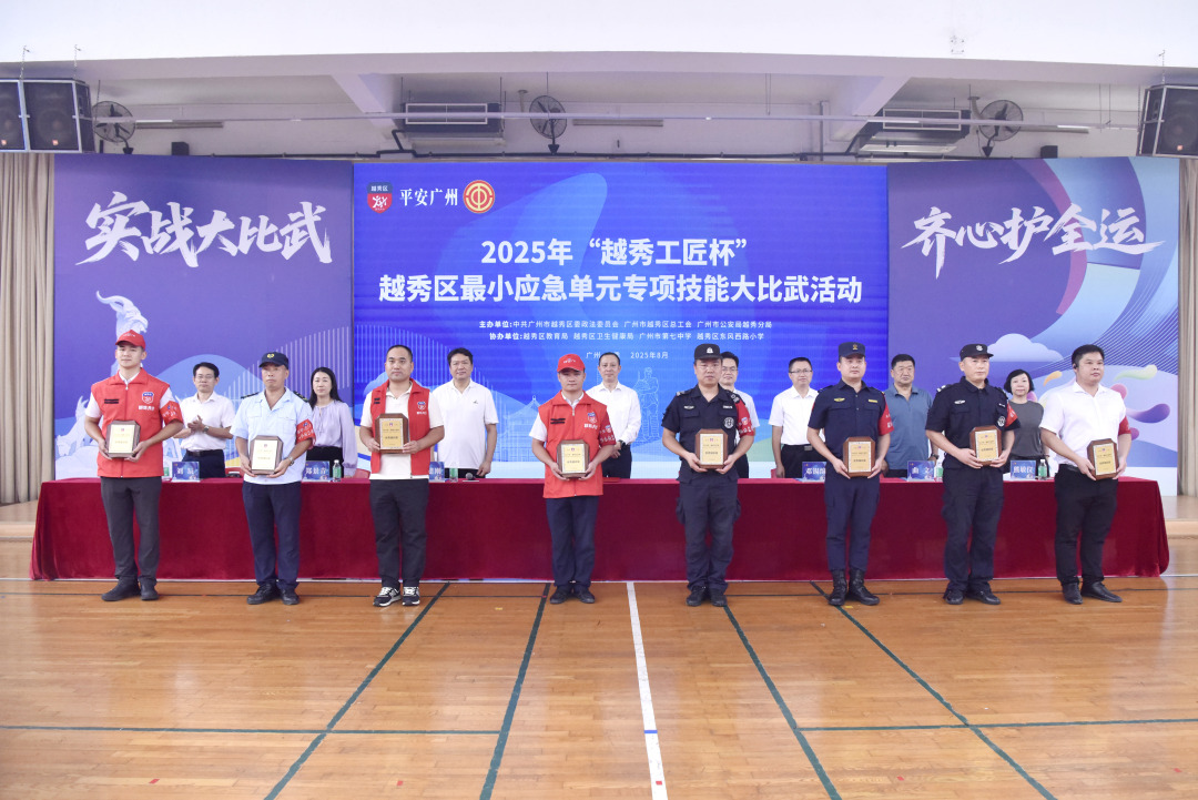主办方表示,最小应急单元是平安建设的“前沿哨点”、是应急处置的基层基础、是社会共治的示范力量,此次大比武活动既是一次技能技术的大练兵,更是一次风采风貌的总展示。据悉,越秀区委政法委、越秀区总工会、广州市公安局越秀分局等单位已连续3年联合举办“越秀工匠杯”最小应急单元大比武活动,旨在提高最小应急单元实战水平。“越秀工匠杯”劳动和技能竞赛品牌不仅生动诠释了安保从业人员等最小应急单元队员在安全防范和应急处突领域精雕细琢、精益求精的工匠精神,更是联动企业等社会力量共同筑牢平安防线的创新实践。此次大比武活动搭建起工会组织与企业、政府各方合作的重要桥梁,也是挖掘工匠、培养工匠、集聚工匠的重要途径。