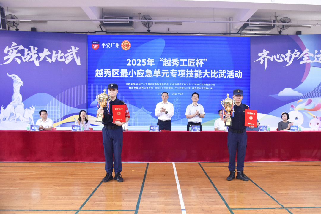 8月21日,由中共广州市越秀区委政法委员会、广州市越秀区总工会、广州市公安局越秀分局主办,越秀区教育局、越秀区卫生健康局、广州市第七中学、越秀区东风西路小学协办的2025年“越秀工匠杯”越秀区最小应急单元专项技能大比武活动在广州市第七中学体育馆开展。