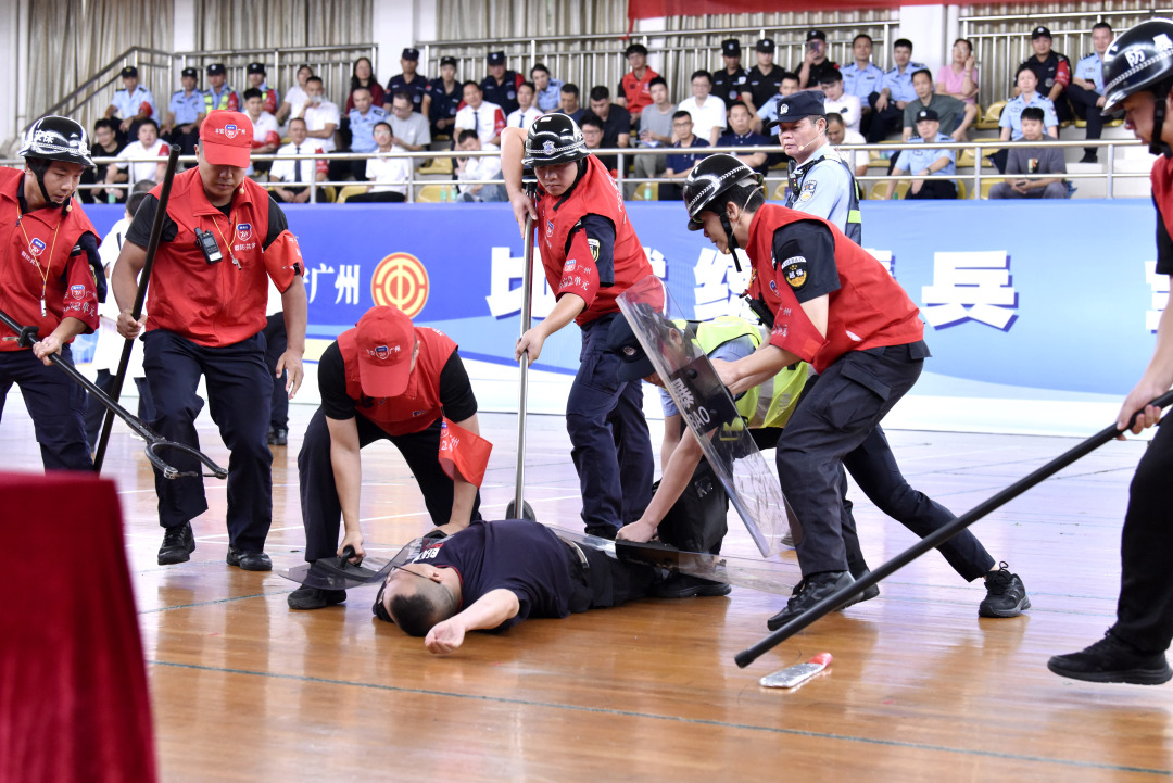 决赛当天,6支从初赛中脱颖而出的参赛队伍模拟了在各类应急突发事件发生时的人员集结、队形排列、警械装备应用、控制现场等环节,各队成员分工明确、快速反应、及时处置,展现了高水平的专业素养和实战技术。经过激烈的比赛角逐,东山街中共三大会议旧址最小应急单元荣获模拟寻衅滋事类一等奖,矿泉街广州UUS服装城、王圣堂村联队荣获模拟寻衅滋事类二等奖,大塘街广东实验中学、广州农民运动讲习所联队荣获模拟寻衅滋事类三等奖;黄花岗街中山大学中山眼科医院区庄院区最小应急单元荣获模拟持械伤人类一等奖,登峰街宝汉管委会最小应急单元荣获模拟持械伤人类二等奖,农林街中山大学北校园最小应急单元荣获模拟持械伤人类三等奖。