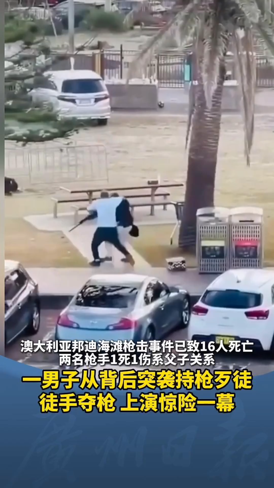澳大利亚邦迪海滩枪击事件已致16人死亡,两名枪手1死1伤系父子关系!一男子从背后突袭持枪歹徒徒手夺枪,上演惊险一幕