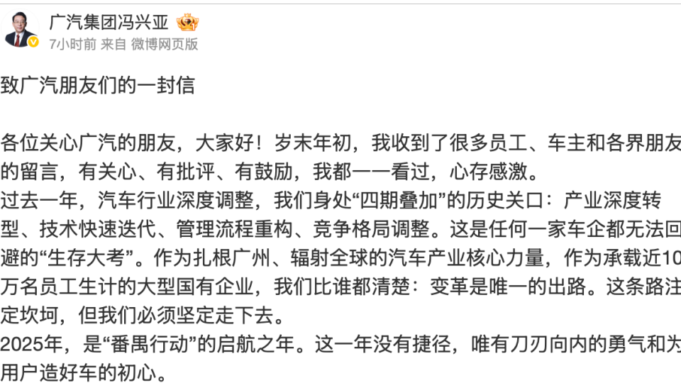 广汽冯兴亚:2026年进入“内部装修”攻坚阶段