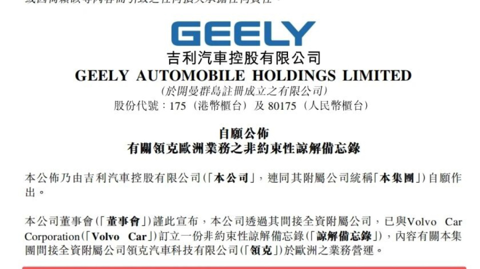 沃尔沃将在欧洲独家销售领克电动汽车
