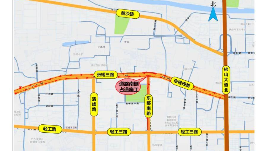 下周三起,佛山张槎三路与东鄱南路交叉路口围蔽施工