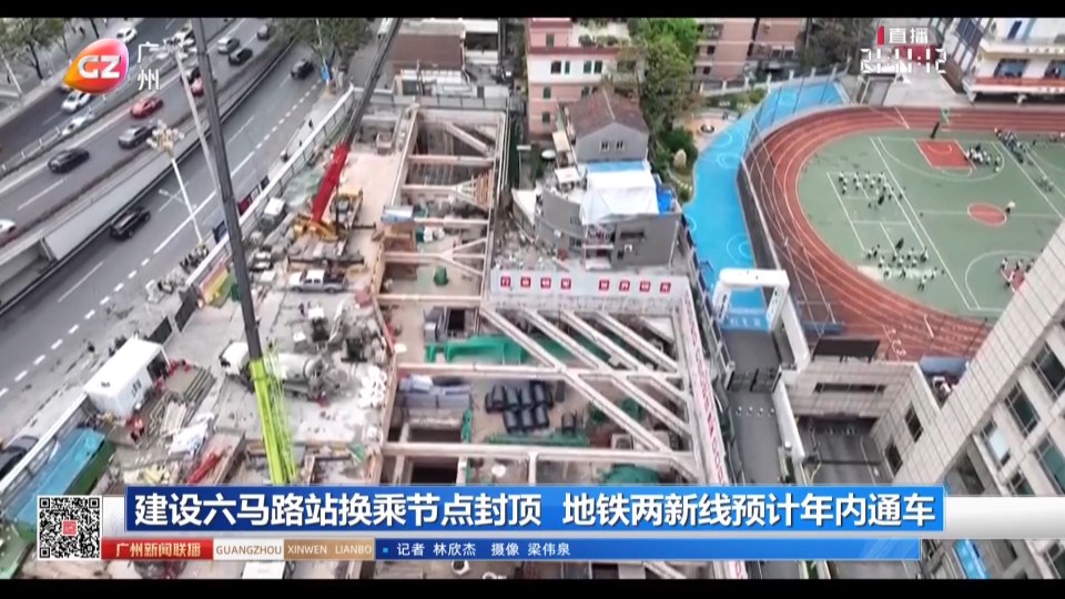 建设六马路站换乘节点封顶 地铁两新线预计年内通车