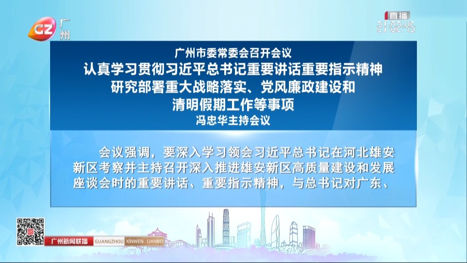 广州市委常委会召开会议 认真学习贯彻习近平总书记重要讲话重要指示精神 研究部署重大战略落实、党风廉政建设和清明假期工作等事项 冯忠华主持会议