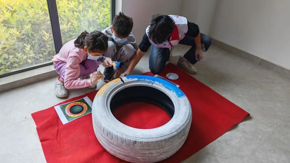 废旧轮胎当“画布”,长岭街道和苑社区绽放“环保之花”