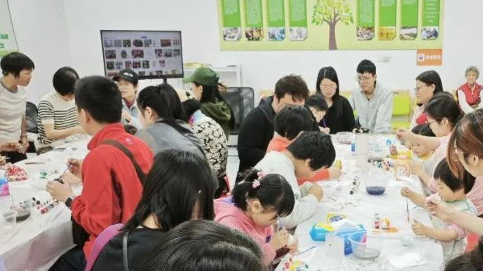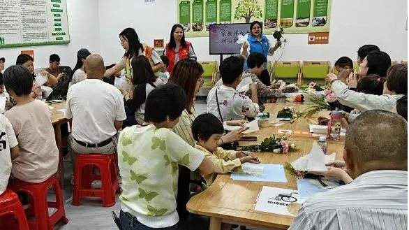 手工包花表达感恩,沙涌社区开展亲子活动