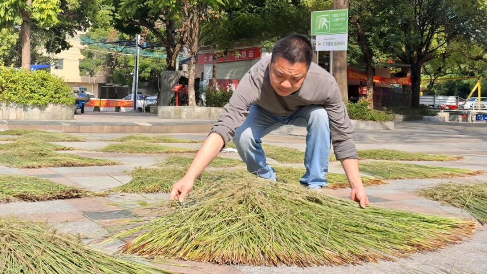 大石街大维村:三月春光日正好,村民割晒灯草忙