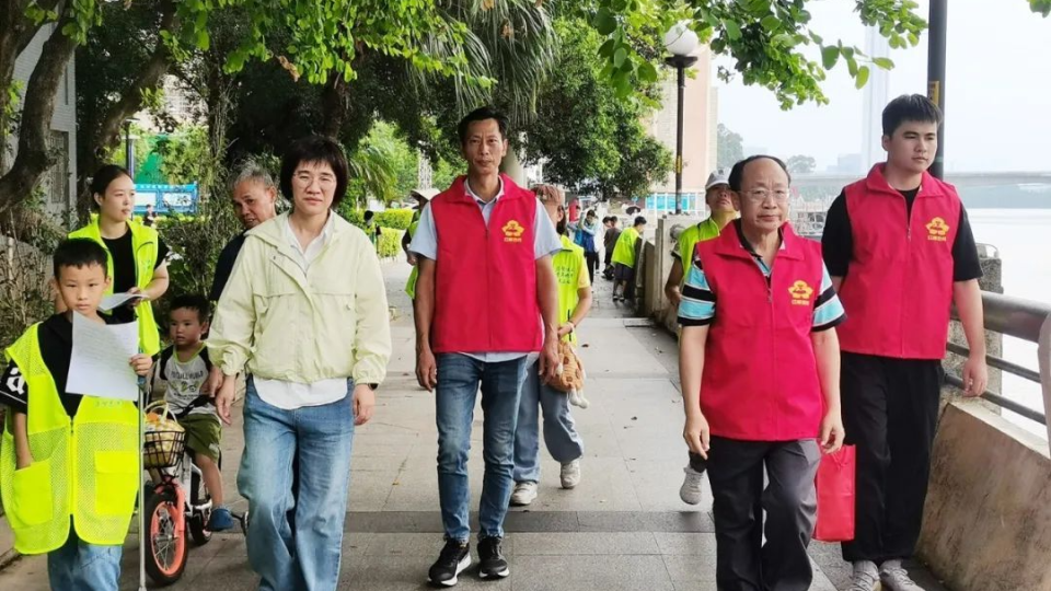 沿着“最美巡河路线”大石水道,红棉老兵、学生志愿者齐齐巡河护水