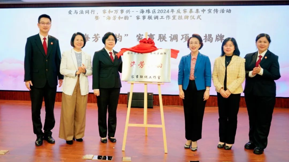 海珠区举办2024年反家暴集中宣传活动暨“海芳和韵”家事联调工作室挂牌仪式