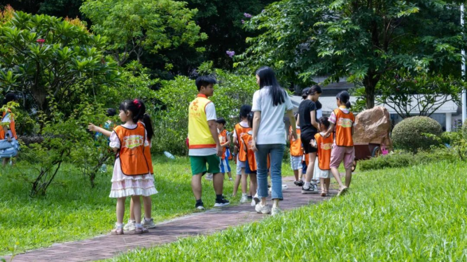 街口街小院流溪社区公益课把小区变“天然教室”,萌娃户外趣学英语