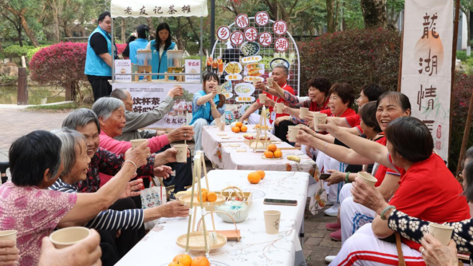 坐低饮杯茶,倾出好心情,龙湖街“老友记乡情茶摊”点亮长者社交新场景