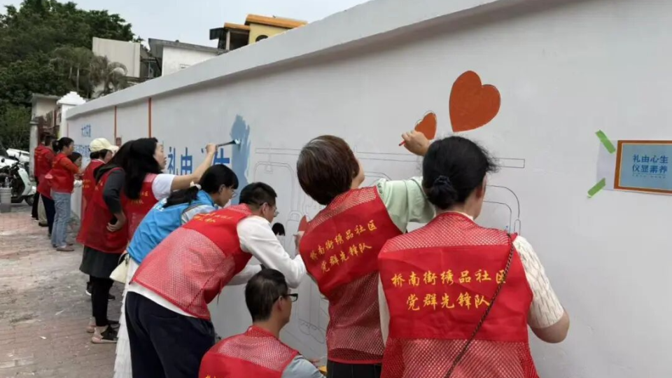 墙绘映初心,重阳添暖情:桥南街绣品社区主题党日活动焕新社区风貌