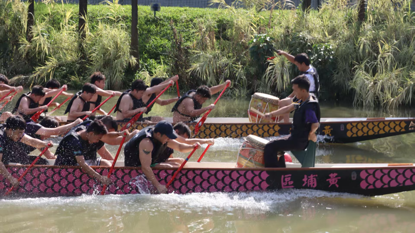 好过瘾!文冲社区龙舟竞渡水上飞驰,邻里助威热闹非凡