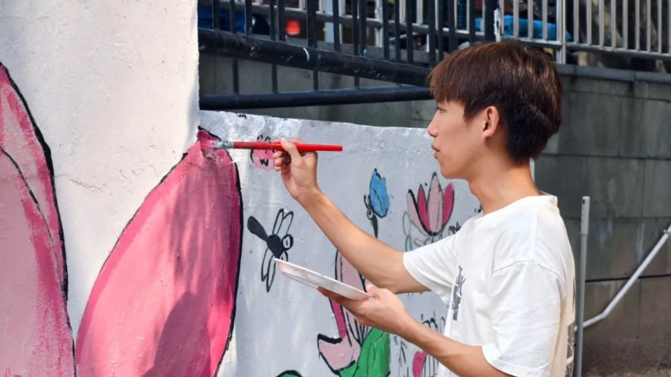 画墙绘、换新颜!校社齐动手,燕塘“旧墙”变身艺术廊