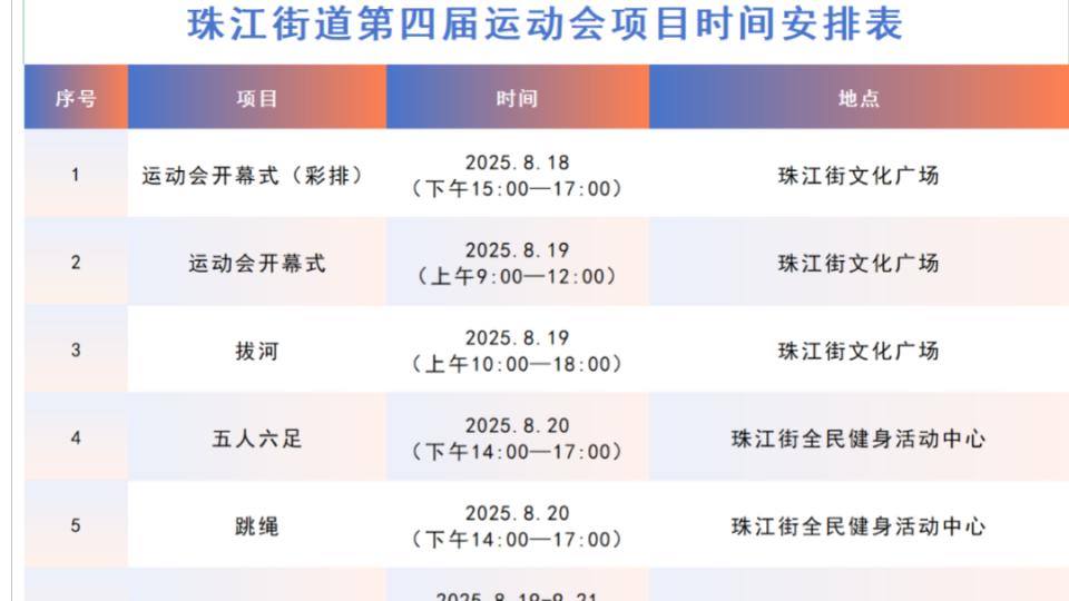 喜迎十五运会!珠江街第四届运动会即将开幕,赛程抢先看