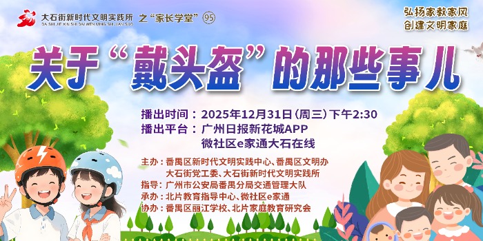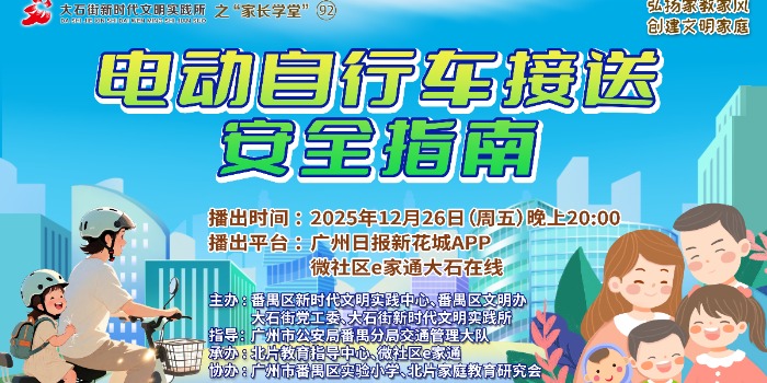 直播丨大石街“家长学堂”第92期:电动自行车接送安全指南