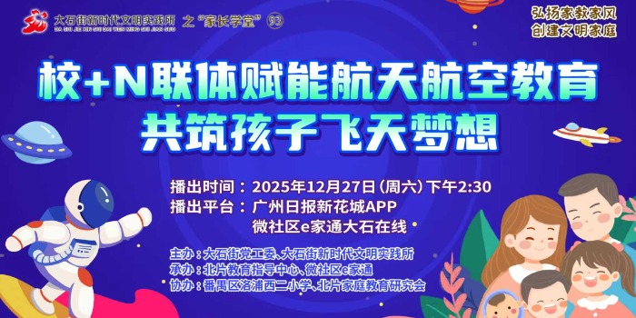直播丨大石街“家长学堂”第93期:校 N联体赋能航天航空教育,共筑孩子飞天梦想