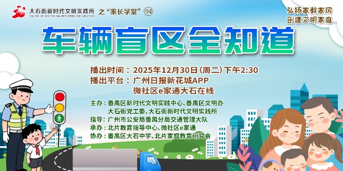 预告丨大石街新时代文明实践所之家长学堂第94期:车辆盲区全知道