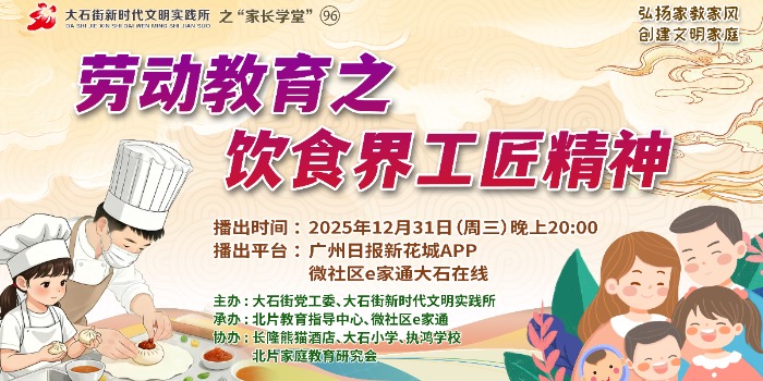 大石街“家长学堂”第96期:劳动教育之饮食界工匠精神