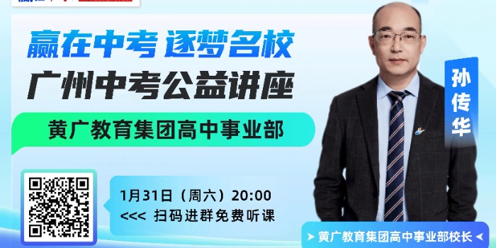 直播|“赢在中考,逐梦名校”2026广州中考公益讲座:黄广教育集团高中事业部专场