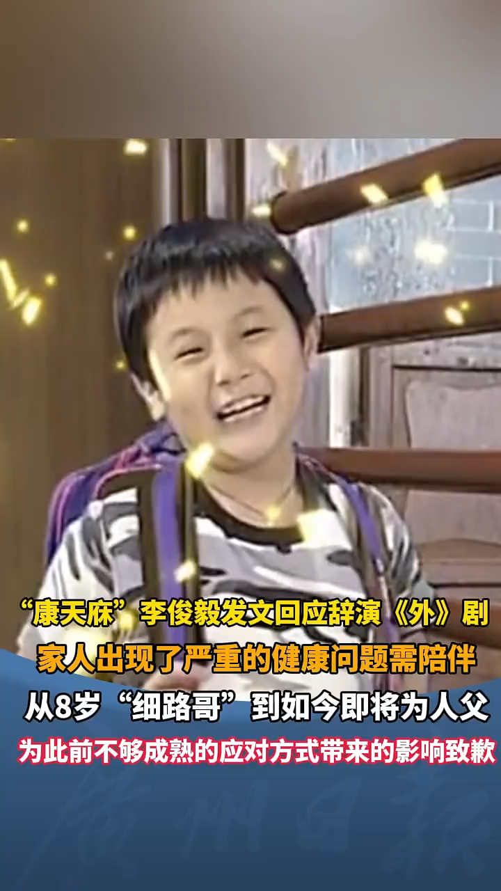 “康天庥”李俊毅发文回应辞演《外》剧 家人出现了严重的健康问题需陪伴 从8岁“细路哥”到如今即将为人父 为此前不够成熟的应对方式带来的影响致歉