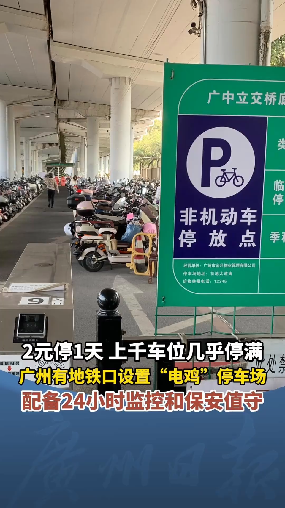 2元停1天,上千车位几乎停满!广州有地铁口设置“电鸡”停车场,配备24小时监控和保安值守