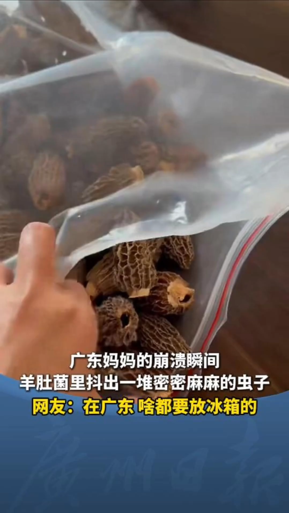 广东妈妈的崩溃瞬间!羊肚菌里抖出一堆密密麻麻的虫子,网友:在广东 啥都要放冰箱的
