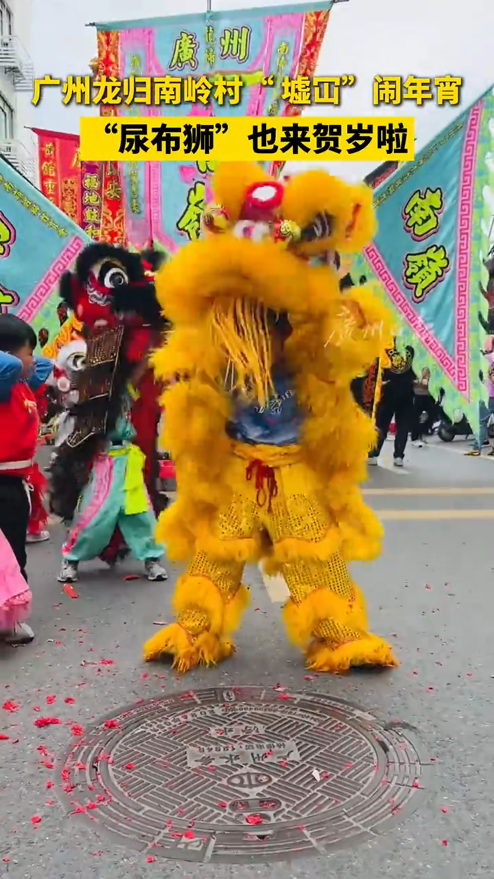 广州龙归南岭村“ 墟冚”闹年宵,“尿布狮”也来贺岁啦