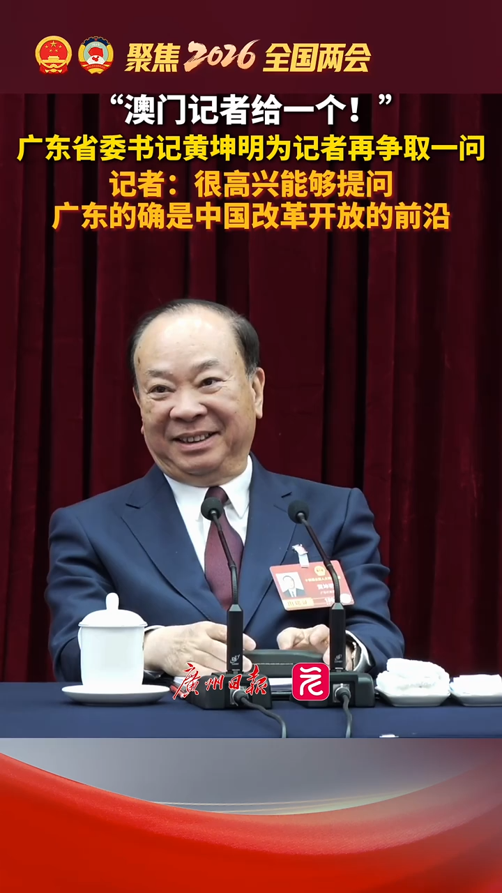 “澳门记者给一个!”广东省委书记为记者再争取一问,记者:很高兴能够提问,广东的确是中国改革开放的前沿