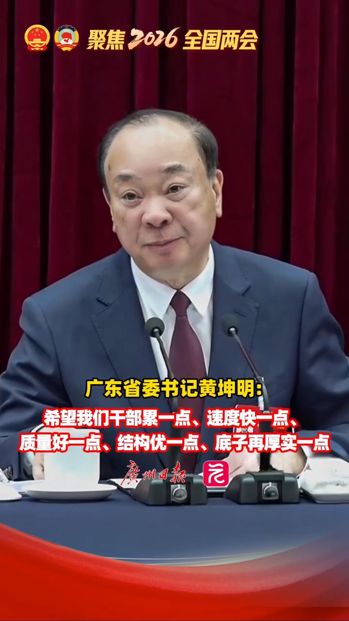 广东省委书记黄坤明:新的一年,希望我们干部累一点、速度快一点、质量好一点、结构优一点、底子再厚实一点