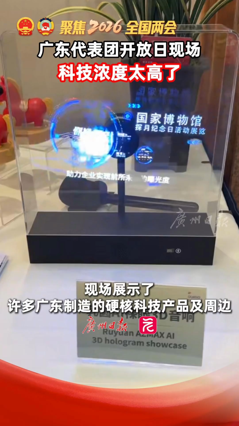在今天的全国两会广东代表团开放日现场,从AI土特产到美食、潮玩,一众“广货”闪耀开放日现场